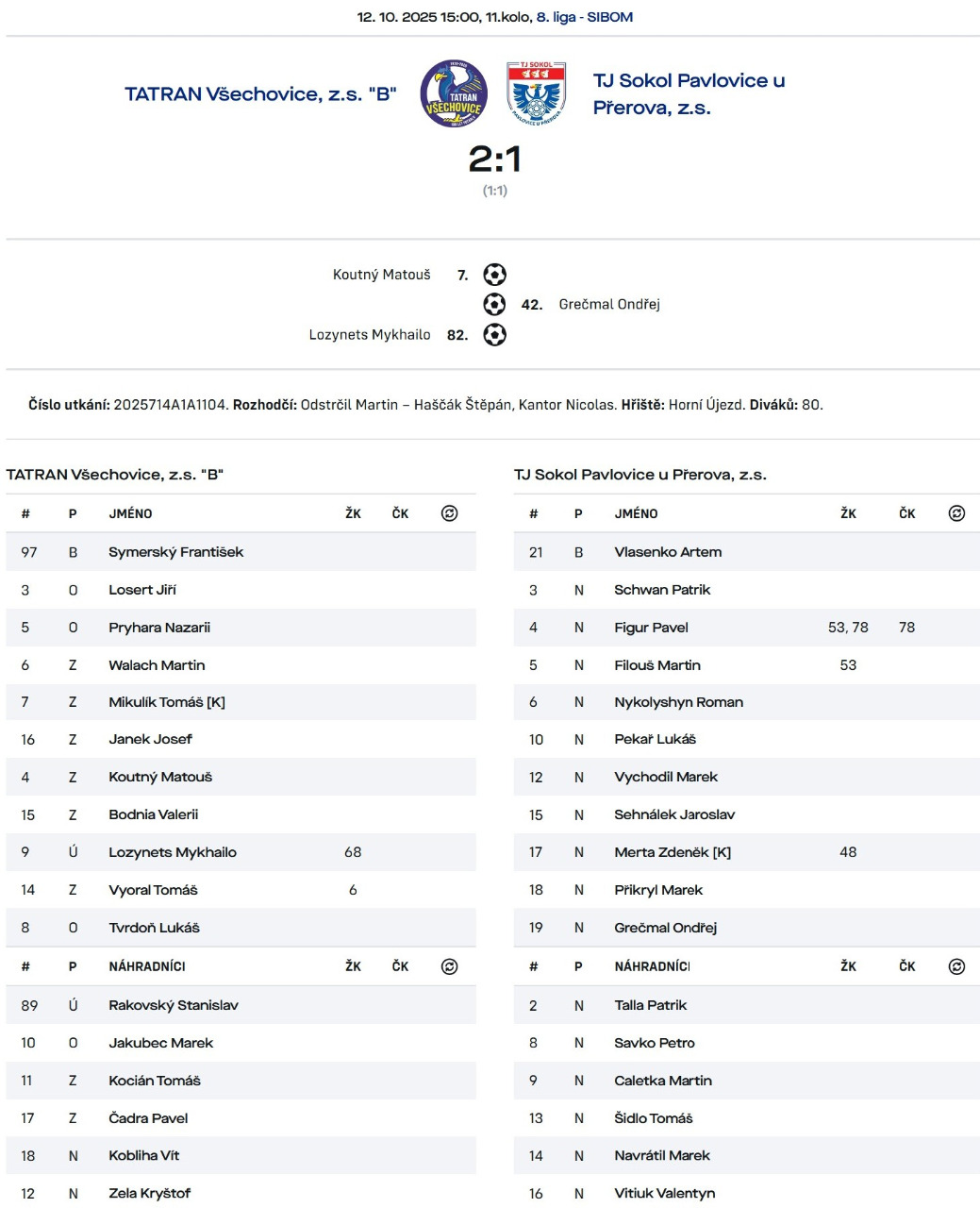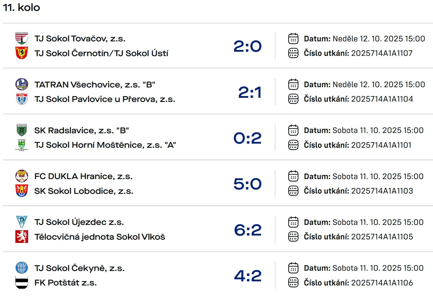 11. kolo - sezóna 2025/2026 - podzim 2025: