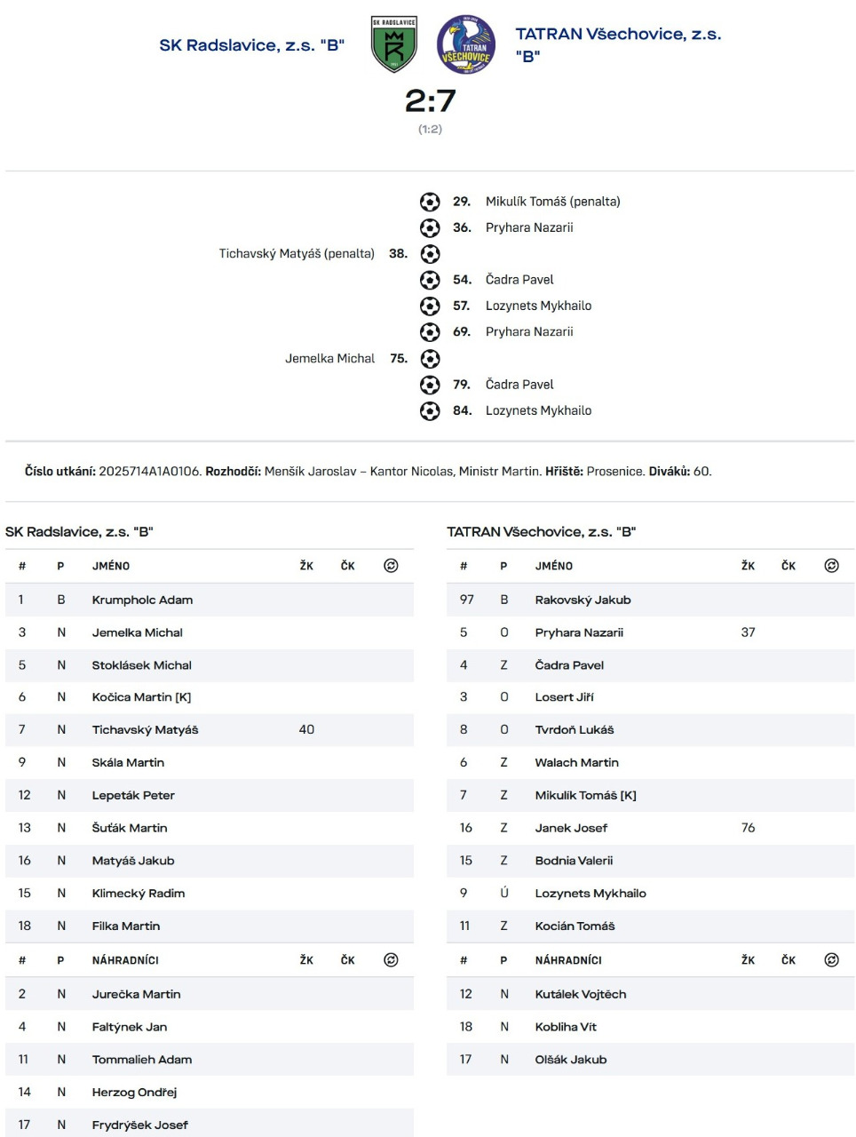 Reporty ze zápasů 2025/2026